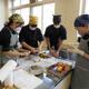 という意見があり、栽培実習の収穫祭と教職員への感謝祭を目的とし、生徒たちは大量の野菜と肉の扱いに苦戦しながらも、おいしく食べてもらえるように丁寧に作業を進めていました。