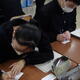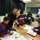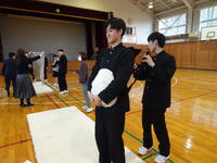 5時間目からは、生徒それぞれが「今年一年を表す漢字」「高校生活を表す漢字」「好きな漢字」のテーマから漢字一字を選び、大きな紙に寄せ書きしました。まずは通常の半紙に練習してから、大きな紙と大きな筆で書きましたが、生徒たちは初めての体験に楽しみながら取り組んでいました。