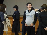 体験活動では、妊婦ジャケットを着用し妊娠後期のおなかの重さを体感する活動や、乳児人形を抱いて重さや大きさを感じる学習も行いました。生徒たちは全員が積極的に参加し、「命の重みを体験できた」「いろいろな人の助けがあって、生まれてくることがわかりました。」など、実際の重みを通して多くの気づきを得ている様子でした。
