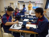後半は場内のコースに出て、内輪差や夜間運転についてなど、体験も含めながら学ばせていただきました。ドローンの操縦を体験する場面では、日高山脈の冠雪や樽前山を見ることができ、その性能の良さに生徒からは感嘆の声が上がっていました。