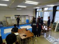 10月21日(火)6校時、後期避難訓練を行いました。今回は、地震による火災発生を想定した訓練を行いました。避難をする前にグループに分かれ、校内にある消火器などの防災器具を探すウォークラリー形式のワークを行いました。校内を歩いている最中に地震発生の放送と火災発生のサイレンが鳴り、それぞれの場所で事前に学習した避難行動を取りました。避難後は、代表生徒による水消火器を使った体験訓練を実施しました。
