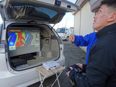 後半は場内のコースに出て、内輪差や夜間運転についてなど、体験も含めながら学ばせていただきました。ドローンの操縦を体験する場面では、日高山脈の冠雪や樽前山を見ることができ、その性能の良さに生徒からは感嘆の声が上がっていました。