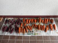 じゃがいもは9月に収穫していたため、今回はさつまいもとにんじんの収穫をおこないました。今年は猛暑のためさつまいもの育ちがあまりよくありませんでしたが、にんじんはとてもよく育ち豊作でした。職員玄関でカビ防止の陰干しをしてから、さつまいもは追熟のため1ヶ月間冷暗所に保管、にんじんは乾燥防止の保存袋に入れて冷蔵庫に保管し、来週の調理実習でさっそく利用したいと思います。