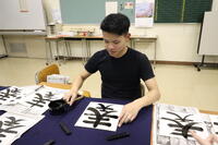 篆刻は、自分の名前の一字をデザインし印刀で彫っていきましたが、生徒たちは線の太さをそろえる、深く彫る事に苦戦していました。押印と修正を数回くり返し完成させた印は、このあとの授業で落款印として使用していきます。